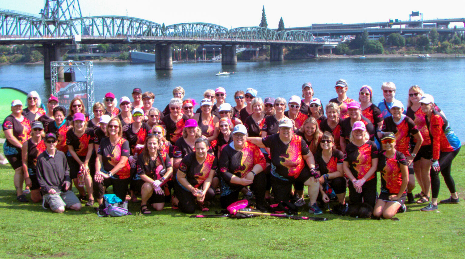 Pink Phoenix Dragon Boat Team is a 501 (c) 3 non-profit organization whose mission is to Empower Breast Cancer Survivors through the Sport of Dragon Boating. Pink Phoenix is based in the City of Roses: Portland, Oregon. Launched in 1996, Pink Phoenix became the United States’ very first breast cancer dragon boat team. We compete and represent as a 100% Breast Cancer Survivor Team, with a 100% volunteer board and no paid employees. Through the sport of dragon boating, teammates find strength and quality of life by paddling together while sharing the common thread of a breast cancer diagnosis – the only requirement to join the team. Our team name was inspired by the mythical bird rising from the ashes, symbolizing rebirth and the beginning of a new life journey. We are all looking to forward to begin a new chapter in life as we embrace life after cancer.